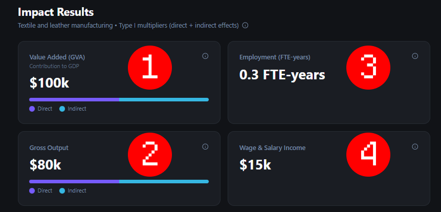 A quick snapshot of your organisation’s economic impact from spending or investment.